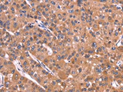 The image on the left is immunohistochemistry of paraffin-embedded Human liver cancer tissue using CSB-PA951162(CRISP3 Antibody) at dilution 1/40, on the right is treated with fusion protein. (Original magnification: ×200)
