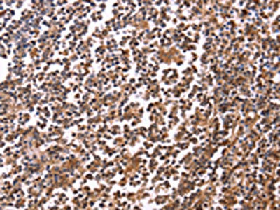 The image on the left is immunohistochemistry of paraffin-embedded Human tonsil tissue using CSB-PA223350(CRK Antibody) at dilution 1/40, on the right is treated with fusion protein. (Original magnification: ×200)