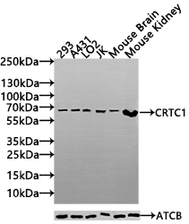 別名:KIAA0616 antibody; CREB regulated transcription coactivator 1 antibody; CREB-regulated transcription coactivator 1 antibody; CRTC1 antibody; CRTC1_HUMAN antibody; FLJ14027 antibody; MECT 1 antibody; Mucoepidermoid carcinoma translocated 1 antibody; Mucoepidermoid carcinoma translocated protein 1 antibody; TORC-1 antibody; TORC1 antibody; Transducer of CREB protein 1 antibody; Transducer of regulated cAMP response element binding protein 1 antibody; Transducer of regulated cAMP response element-binding protein (CREB) 1 antibody; Transducer of regulated cAMP response element-binding protein 1 antibody; WAMTP1 antibody