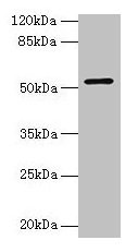 Predicted band size: 52 kDa