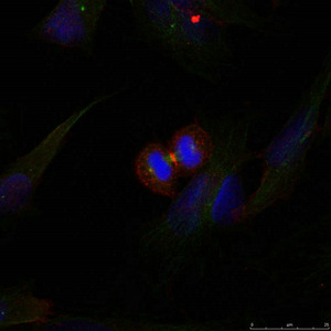 Immunofluorescence staining of methanol-fixed Hela cells using b-Catenin(Ab-37) Antibody.
