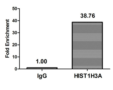 Chromatin Immunoprecipitation Hela (4*106, treated with 30mM sodium crotonylate for 4h) were treated with Micrococcal Nuclease, sonicated, and immunoprecipitated with 5µg anti-HIST1H3A (CSB-PA010418OA18crHU) or a control normal rabbit IgG. The resulting ChIP DNA was quantified using real-time PCR with primers against the β-Globin promoter.