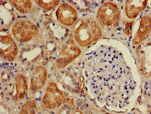 Immunohistochemistry of paraffin-embedded human kidney tissue using CSB-PA880116LA01HU at dilution of 1:100