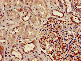 Immunohistochemistry of paraffin-embedded human kidney tissue using CSB-PA007134LA01HU at dilution of 1:100