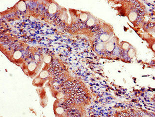 Immunohistochemistry of paraffin-embedded human small intestine tissue using CSB-PA857867LA01HU at dilution of 1:100