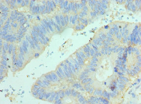 • Immunohistochemistry of paraffin-embedded human colon cancer using CSB-PA857453ESR2HU at dilution of 1:100