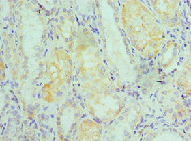Immunohistochemistry of paraffin-embedded human kidney tissue using CSB-PA620878ESR1HU at dilution of 1:100