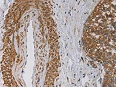 The image on the left is immunohistochemistry of paraffin-embedded Human cervical cancer tissue using CSB-PA939763(EMC8 Antibody) at dilution 1/30, on the right is treated with fusion protein. (Original magnification: ×200)