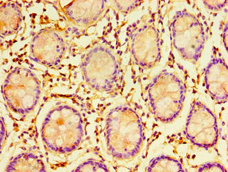 Immunohistochemistry of paraffin-embedded human colon tissue using CSB-PA896688LA01HU at dilution of 1:100