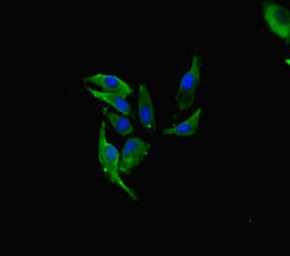 Immunofluorescent analysis of Hela cells using CSB-PA01825A0Rb at dilution of 1:100 and Alexa Fluor 488-congugated AffiniPure Goat Anti-Rabbit IgG(H+L)