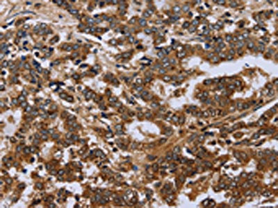 The image on the left is immunohistochemistry of paraffin-embedded Human liver cancer tissue using CSB-PA045962(FH Antibody) at dilution 1/30, on the right is treated with fusion protein. (Original magnification: ×200)