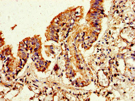 Immunohistochemistry of paraffin-embedded human lung tissue using CSB-PA008714LA01HU at dilution of 1:100