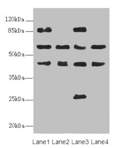 Observed band size: 58, 86, 45, 26 kDa -