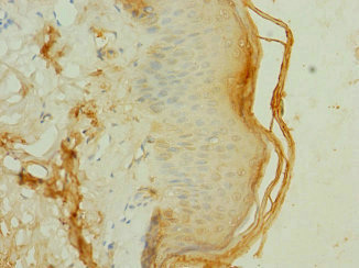 Immunohistochemistry of paraffin-embedded human skin tissue using CSB-PA009005LA01HU at dilution of 1:100
