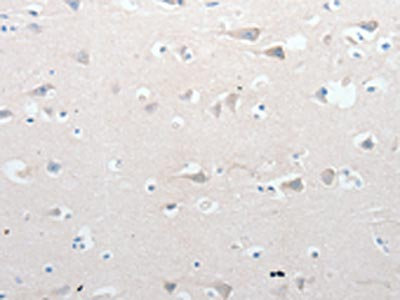 The image on the left is immunohistochemistry of paraffin-embedded Human brain tissue using CSB-PA929459(GCH1 Antibody) at dilution 1/15, on the right is treated with synthetic peptide. (Original magnification: ×200)