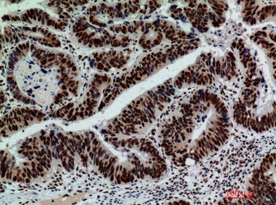 Immunohistochemical analysis of paraffin-embedded human-colont-cancer, antibody was diluted at 1:200