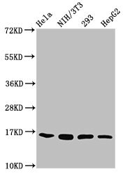 Positive WB detected in: Hela whole cell lysate, NIH/3T3 whole cell lysate, 293 whole cell lysate, HepG2 whole cell lysate