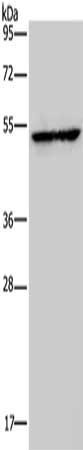 Gel: 8%SDS-PAGE, Lysate: 40 μg, Lane: Human fetal liver tissue, Primary antibody: CSB-PA187322(HMGCS2 Antibody) at dilution 1/300, Secondary antibody: Goat anti rabbit IgG at 1/8000 dilution, Exposure time: 30 seconds