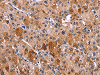 The image on the left is immunohistochemistry of paraffin-embedded Human liver cancer tissue using CSB-PA334654(HRH1 Antibody) at dilution 1/40, on the right is treated with synthetic peptide. (Original magnification: ×200)