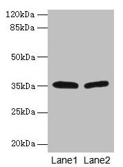 Observed band size: 35 kDa -
