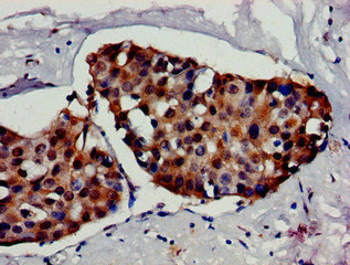Immunohistochemistry of paraffin-embedded human breast cancer using CSB-PA010791LA01HU at dilution of 1:100