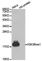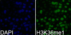 免疫原:A synthetic methylated peptide corresponding to residues surrounding K36 of Human histone H3