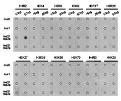 免疫原:A synthetic methylated peptide corresponding to residues surrounding R2 of Human histone H3