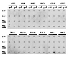 免疫原:A synthetic peptide corresponding to the amino terminus of histone H4 in which Arg3 is di-methylated.
