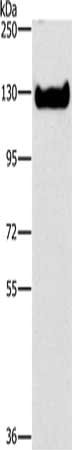 Gel: 6%SDS-PAGE, Lysate: 40 μg, Lane: Jurkat cells, Primary antibody: CSB-PA596032(ICAM3 Antibody) at dilution 1/348, Secondary antibody: Goat anti rabbit IgG at 1/8000 dilution, Exposure time: 1 minute