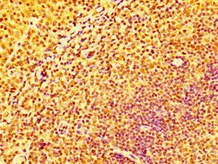IHC image of CSB-PA011052LA01HU diluted at 1:100 and staining in paraffin-embedded human tonsil tissue performed on a Leica BondTM system. After dewaxing and hydration, antigen retrieval was mediated by high pressure in a citrate buffer (pH 6.0). Section was blocked with 10% normal goat serum 30min at RT. Then primary antibody (1% BSA) was incubated at 4°C overnight. The primary is detected by a biotinylated secondary antibody and visualized using an HRP conjugated SP system.