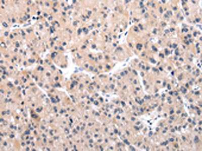 The image on the left is immunohistochemistry of paraffin-embedded Human liver cancer tissue using CSB-PA070545(IGF1 Antibody) at dilution 1/30, on the right is treated with synthetic peptide. (Original magnification: ×200)