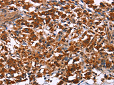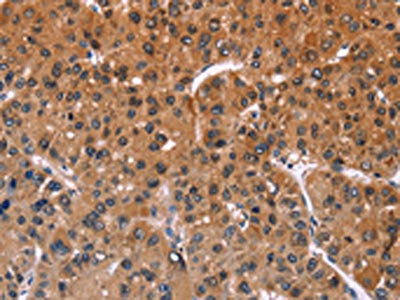 The image on the left is immunohistochemistry of paraffin-embedded Human liver cancer tissue using CSB-PA777986(ING2 Antibody) at dilution 1/40, on the right is treated with fusion protein. (Original magnification: ×200)