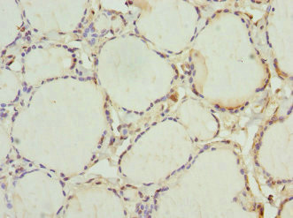 Immunohistochemistry of paraffin-embedded human thyroid tissue using CSB-PA011721ESR2HU at dilution of 1:100