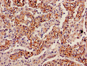 Immunohistochemistry of paraffin-embedded human lung cancer using CSB-PA011723LA01HU at dilution of 1:100