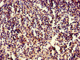 Immunohistochemistry of paraffin-embedded human spleen tissue using CSB-PA011818LA01HU at dilution of 1:100
