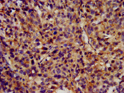 IHC image of CSB-PA621758LA01HU diluted at 1:300 and staining in paraffin-embedded human ovarian cancer performed on a Leica BondTM system. After dewaxing and hydration, antigen retrieval was mediated by high pressure in a citrate buffer (pH 6.0). Section was blocked with 10% normal goat serum 30min at RT. Then primary antibody (1% BSA) was incubated at 4°C overnight. The primary is detected by a biotinylated secondary antibody and visualized using an HRP conjugated SP system.
