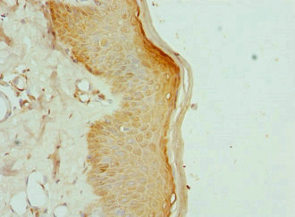 Immunohistochemistry of paraffin-embedded human skin tissue using CSB-PA839797DSR2HU at dilution of 1:100