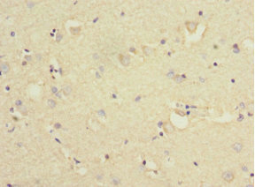 Immunohistochemistry of paraffin-embedded human brain tissue using CSB-PA012379DSR2HU at dilution of 1:100
