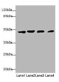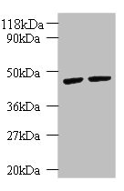 Predicted band size: 49 kDa