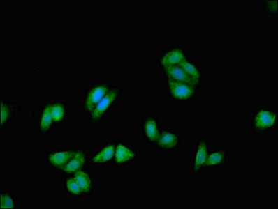 Immunofluorescent analysis of HepG2 cells using CSB-PA10629A0Rb at dilution of 1:100 and Alexa Fluor 488-congugated AffiniPure Goat Anti-Rabbit IgG(H+L)