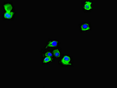Immunofluorescent analysis of Hela cells using CSB-PA012931LA01HU at dilution of 1:100 and Alexa Fluor 488-congugated AffiniPure Goat Anti-Rabbit IgG(H+L)