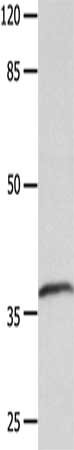 Gel: 10%SDS-PAGE, Lysate: 40 μg, Lane: Human liver cancer tissue, Primary antibody: CSB-PA943910(LPAR4 Antibody) at dilution 1/250, Secondary antibody: Goat anti rabbit IgG at 1/8000 dilution, Exposure time: 1 minute
