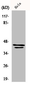 Western Blot analysis of HELA using ERK 1/2 Polyclonal Antibody.