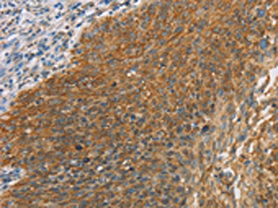 The image on the left is immunohistochemistry of paraffin-embedded Human cervical cancer tissue using CSB-PA243230(MAPK6 Antibody) at dilution 1/40, on the right is treated with synthetic peptide. (Original magnification: ×200)