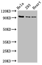 Positive WB detected in: Hela whole cell lysate, 293 whole cell lysate, Rat heart tissue
