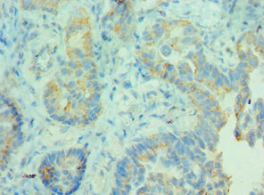 Immunohistochemistry of paraffin-embedded human lung cancer using CSB-PA013623ESR1HU at dilution of 1:100