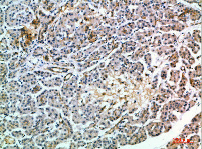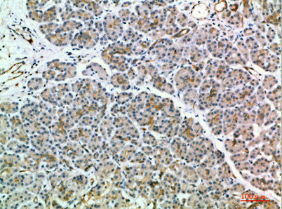 Immunohistochemical analysis of paraffin-embedded human-pancreas, antibody was diluted at 1:200