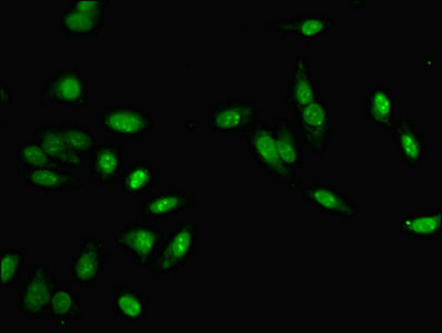 Immunofluorescent analysis of Hela cells using CSB-PA17009A0Rb at dilution of 1:100 and Alexa Fluor 488-congugated AffiniPure Goat Anti-Rabbit IgG(H+L)