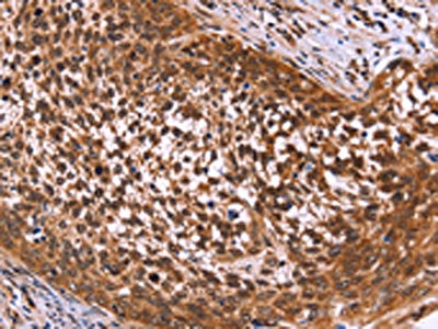 The image on the left is immunohistochemistry of paraffin-embedded Human cervical cancer tissue using CSB-PA987494(MSH4 Antibody) at dilution 1/50, on the right is treated with fusion protein. (Original magnification: ×200)
