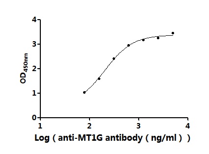 Measured by its binding ability in a functional ELISA.Immobilized Human MT1G(CSB-RP173844h) at 2 μg/mL can bind anti-MT1G antibody(CSB-PA17384A0Rb).